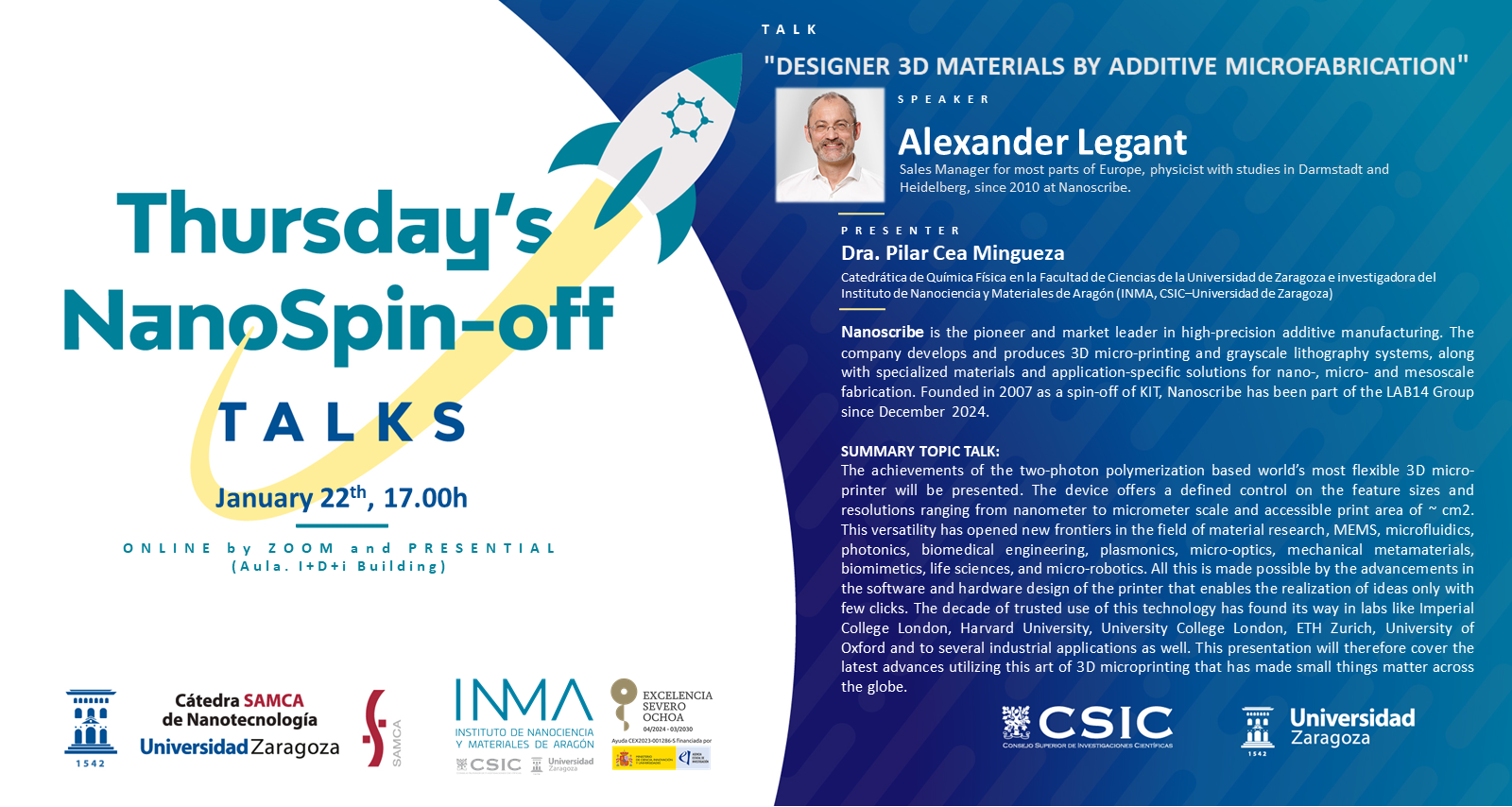 El 27 de marzo se llevó a cabo en el ciclo de charlas de la Cátedra SAMCA de Nanotecnología “Thursday´s NanoSpin-off Talks”, la charla «Nanological: Ultra-Fast Bacterial Identification for Sepsis Diagnosis» YOUTUBE https://youtu.be/bhPNF11YUps?si=yfpZHD_xvvujPYnp